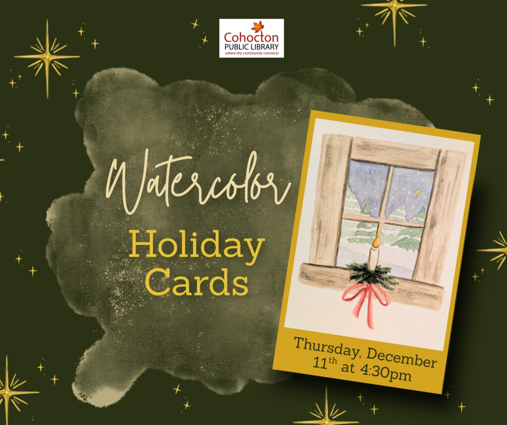 Watercolor Holiday Cards- December 11th at 4:30pm: Spread Joy this season with handmade holiday cards. Join local artist Milly Wilkinson for a heartwarming watercolor workshop where you’ll create one-of-a-kind cards to share with friends family- or to brighten a stranger’s day. Registration required.